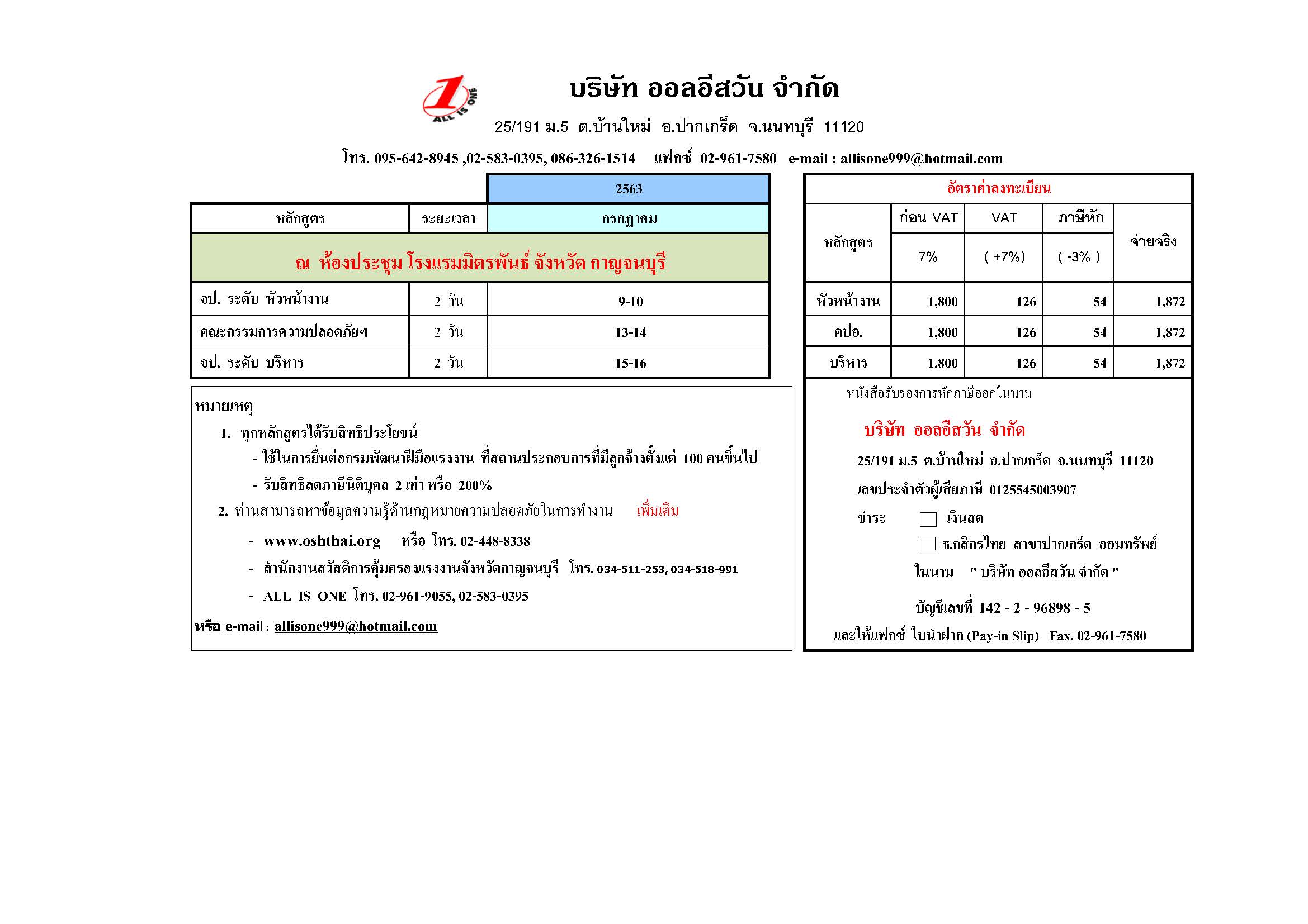 กำหนดการอบรมหลักสูตรจป. จ.กาญจนบุรี (ราคาพิเศษ) ดาวน์โหลด