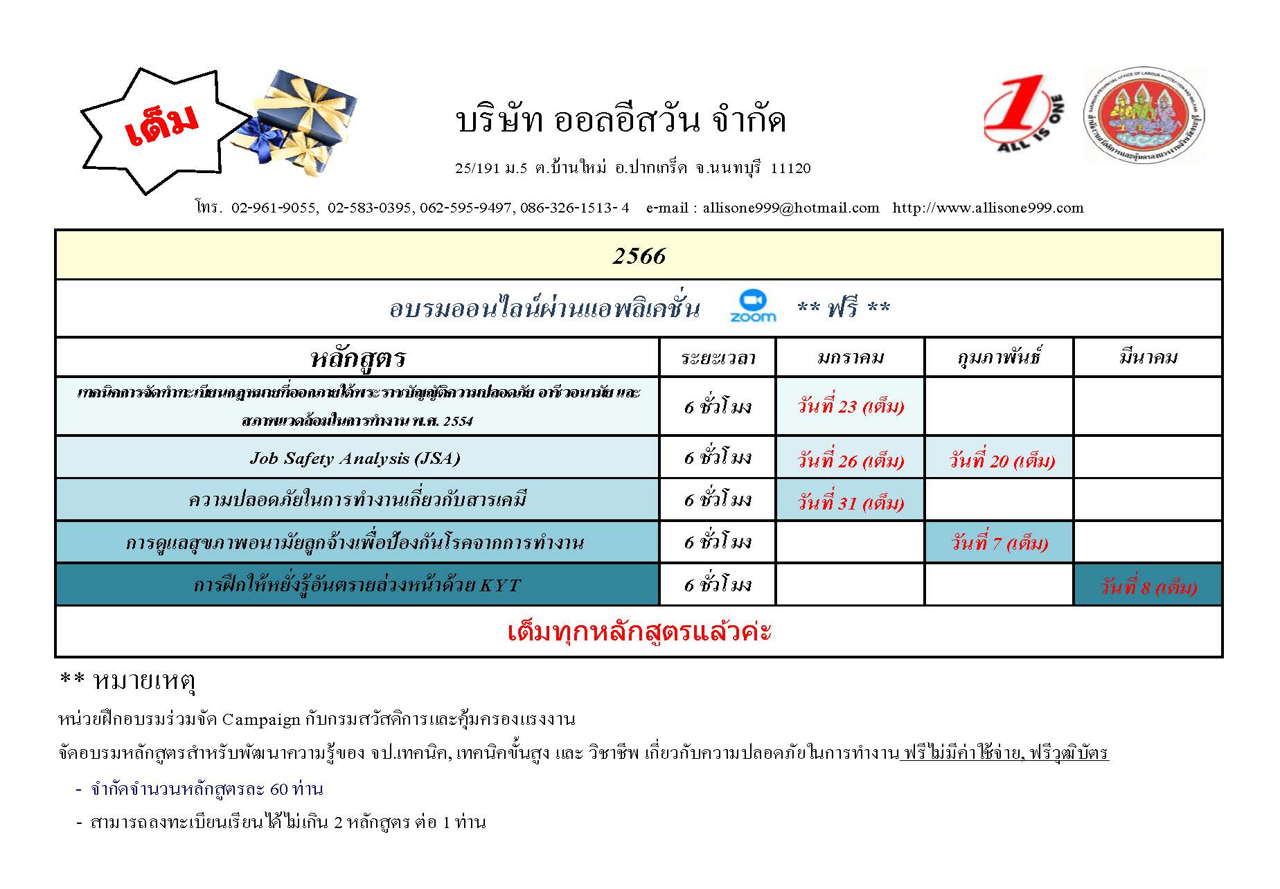 หลักสูตรฟรี เพื่อพัฒนาความรู้สำหรับจป.เทคนิค, เทคนิคขั้นสูง และ จป.วิชาชีพ เต็มแล้วค่ะ