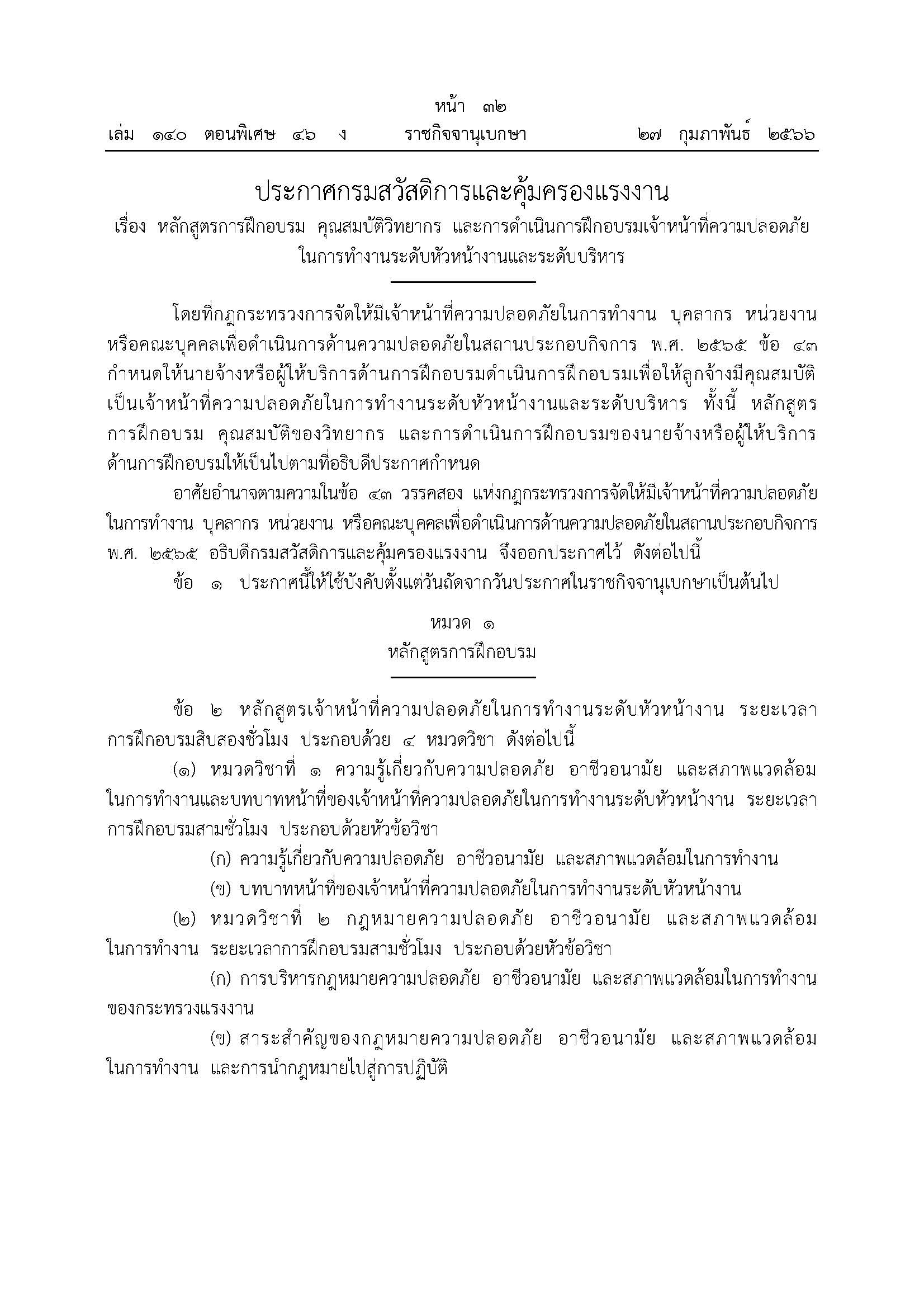 เรื่อง หลักสูตรการฝึกอบรม คุณสมบัติวิทยากร และการดำเนินการฝึกอบรมเจ้าหน้าที่ความปลอดภัย